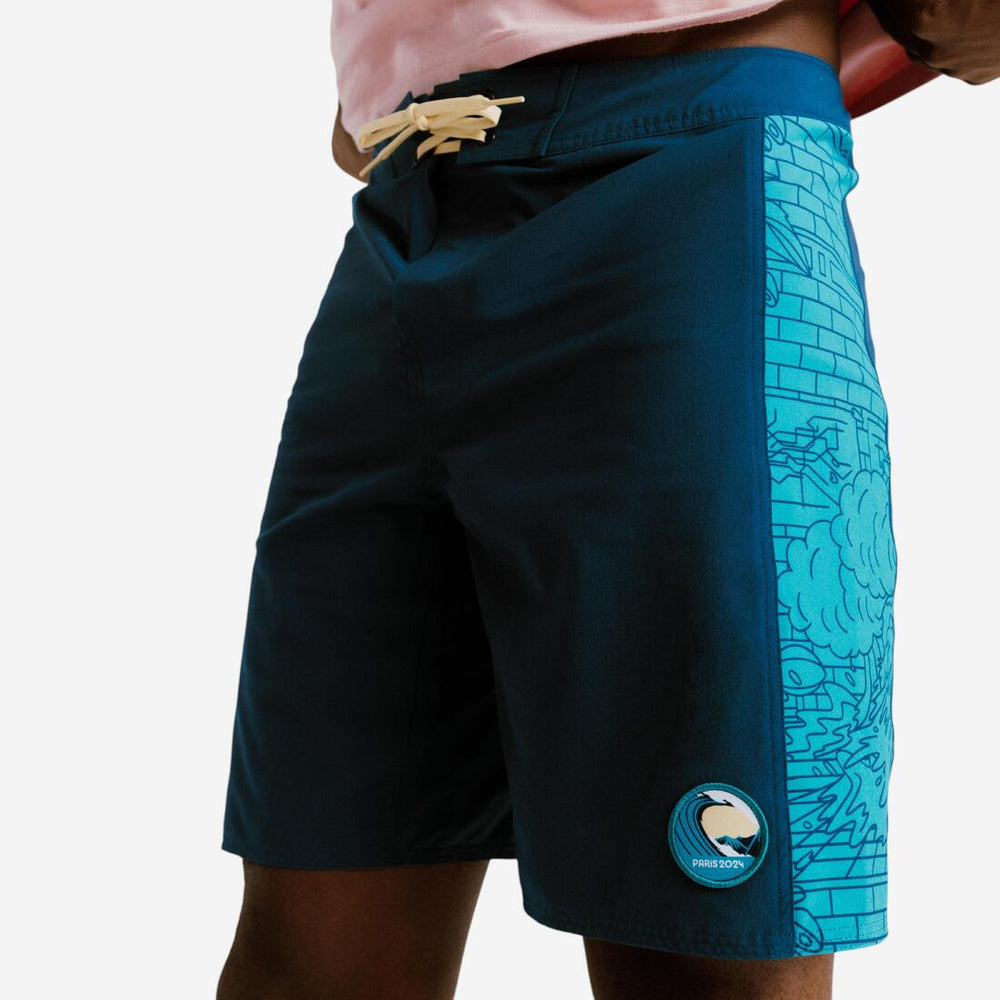 Portez ce short de bain inspiré des 4 nouveaux sports des Jeux Olympiques de Paris 2024 : breaking, skateboard, surf et escalade.