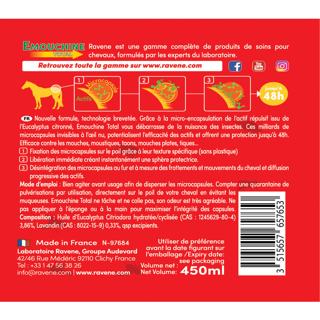 Répulsif anti-insecte équitation Cheval et Poney - Emouchine total 450 ml