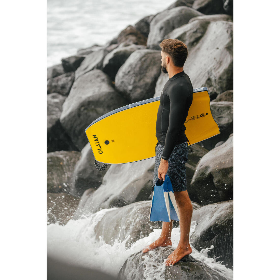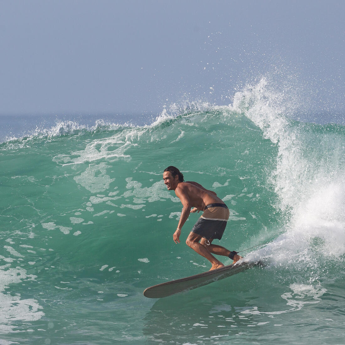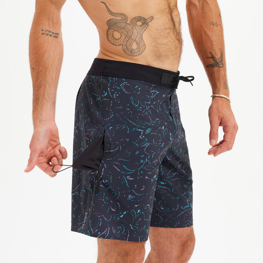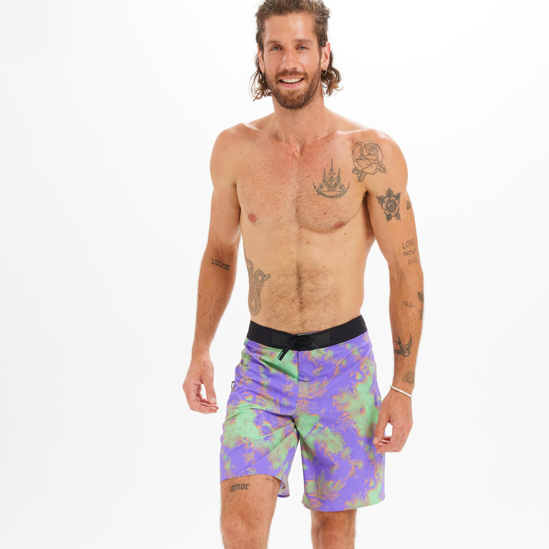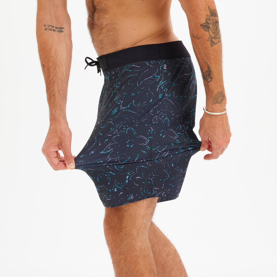 En surf, bodyboard et bodysurf, les jambes sont très sollicitées, le maillot de bain homme ne doit donc contraindre ni les flexions ni le palmage. Un composant bi-directionnel ou quadri-directionnel participe à cette liberté de mouvement. Le boardshort 500 est composé d'une matière offrant un stretch agréable quadri-directionnel.