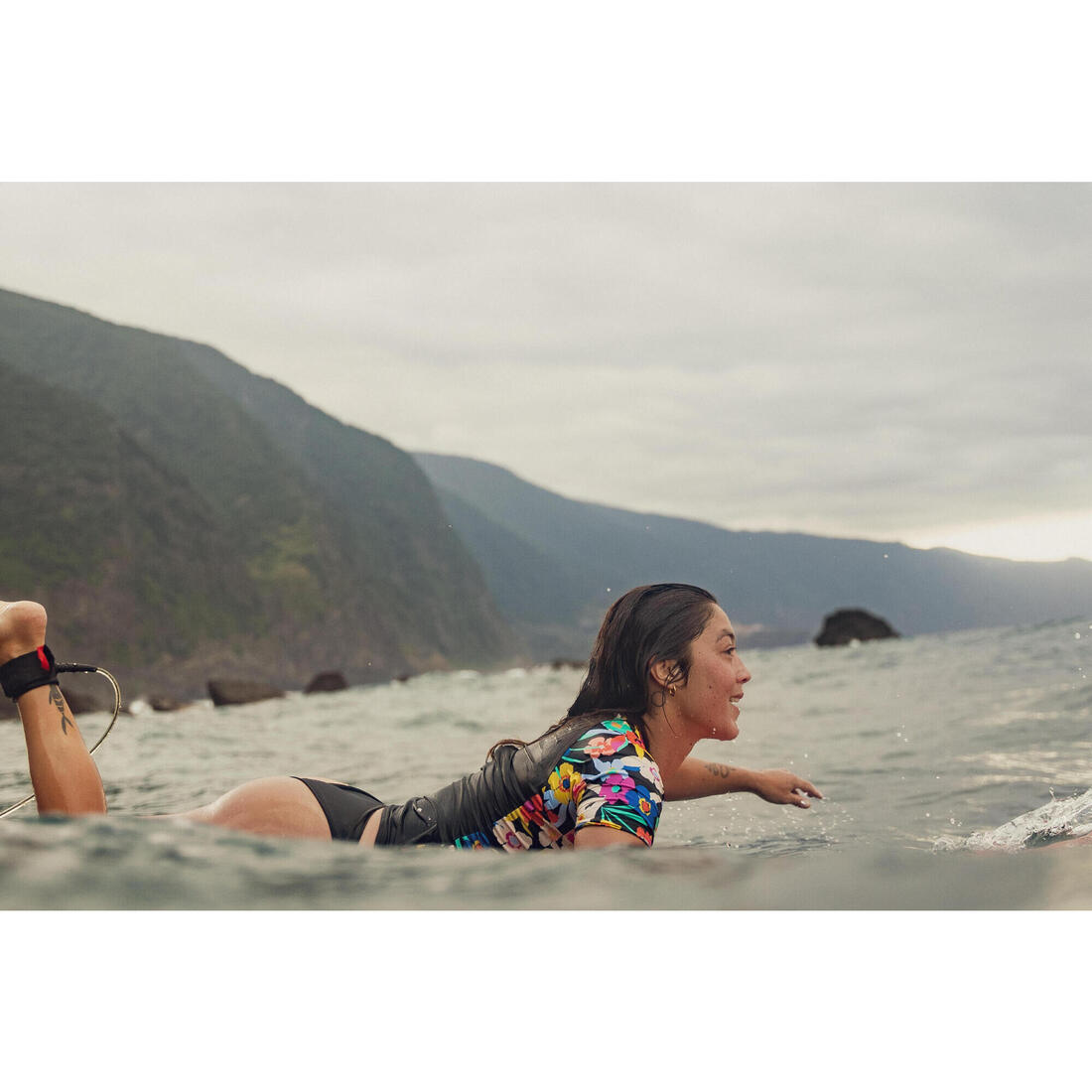 Conçu pour les surfeuses confirmées, ce tee shirt anti UV à manches courtes vous protège des rayons du soleil lors de vos sessions estivales