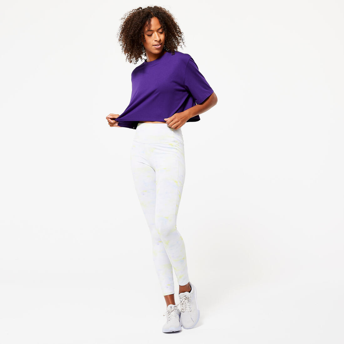 Ce crop top se porte simplement sur une brassière avec un pantalon de jogging ou un legging pour un look stylé. Sa coupe crop et son volume ample s'accordent avec toutes vos tenues et subliment votre silhouette. Vous aimerez le porter pour vos séances de sport comme pour vos sorties entre copines !