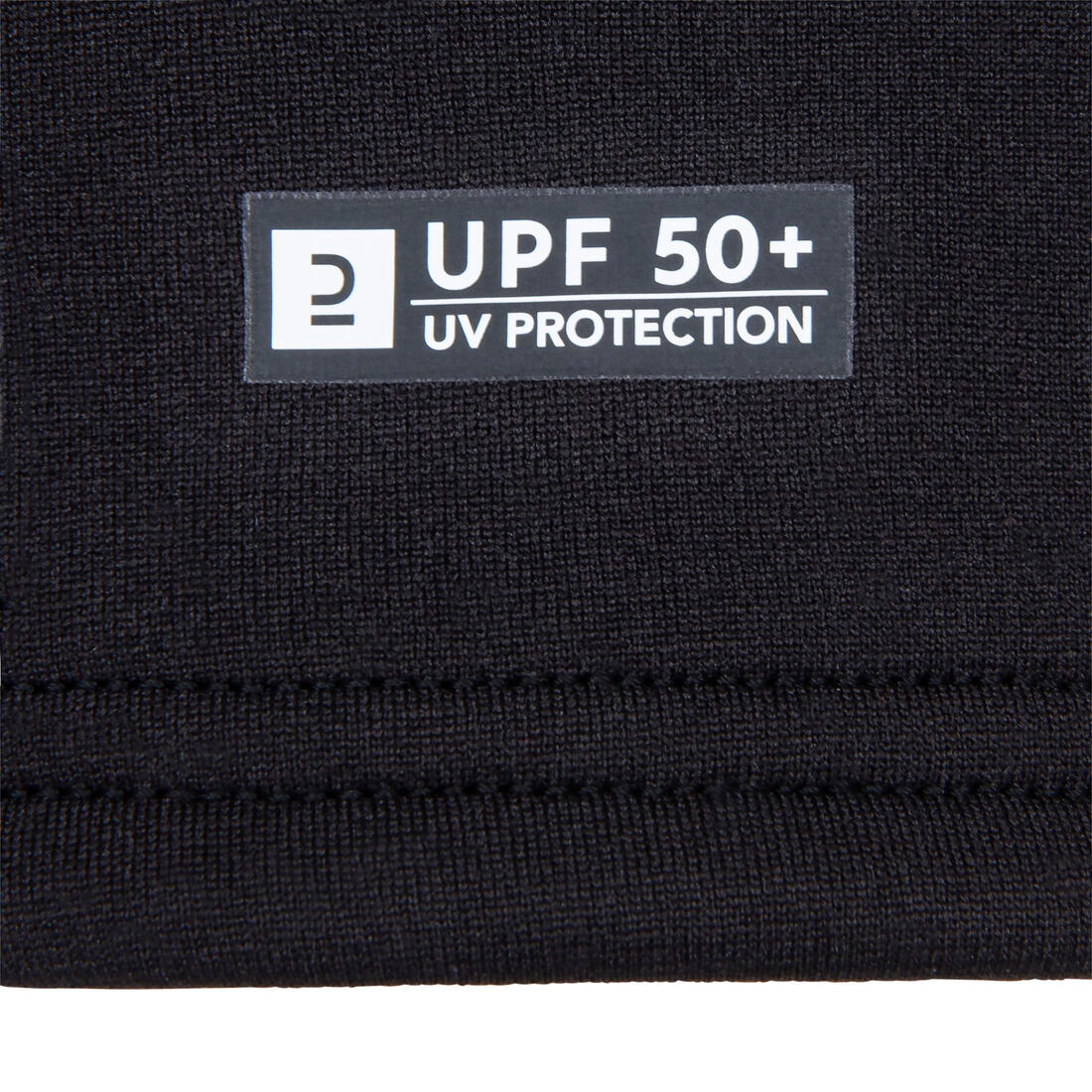 Le textile qui compose ce produit anti-UV OLAIAN permet de bloquer au minimum 98 % des UVB et 95 % des UVA (UPF 50+). C'est la garantie d'une protection efficace contre le soleil. Il peut être utilisé dans et hors de l'eau pour la pratique des sports nautiques et aquatiques. La filtration des UV est générée par la densité des fibres textiles, cette protection est durable dans le temps, même après lavage.