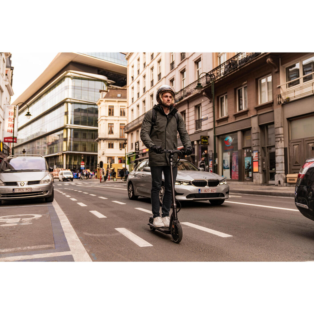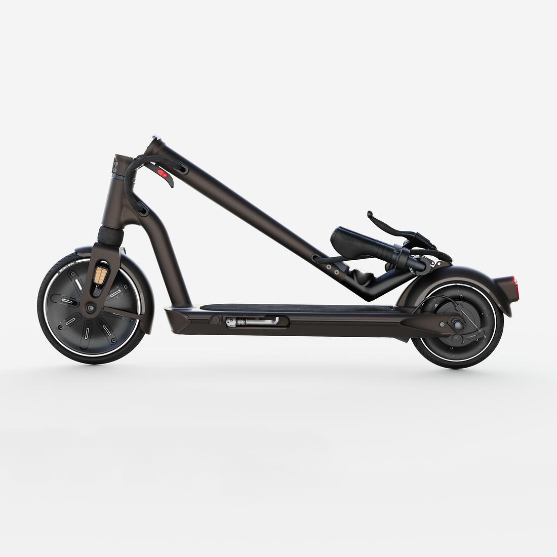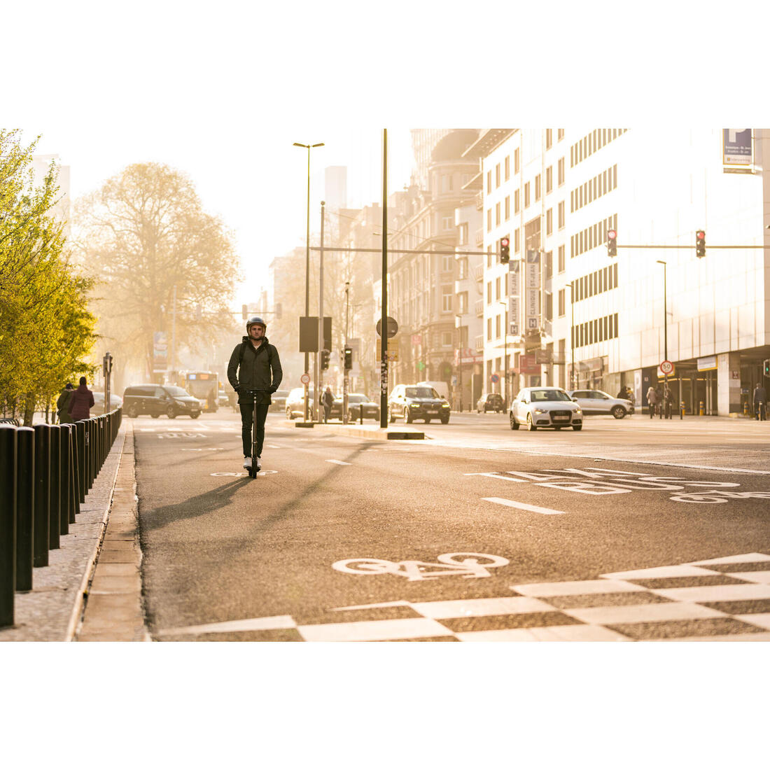 Aucun risque de crevaison lors de vos trajets en ville grâce aux deux grandes roues pleines increvables et alvéolées. La grande roue avant de 250 mm apporte confort, stabilité et capacité de franchissement. Elle vous facilitera le passage d'obstacles comme les bordures et les aspérités de la route. Vous pourrez également compter sur sa suspension avant et son grip plateau pour vous assurer un confort optimal lors de vos déplacements.