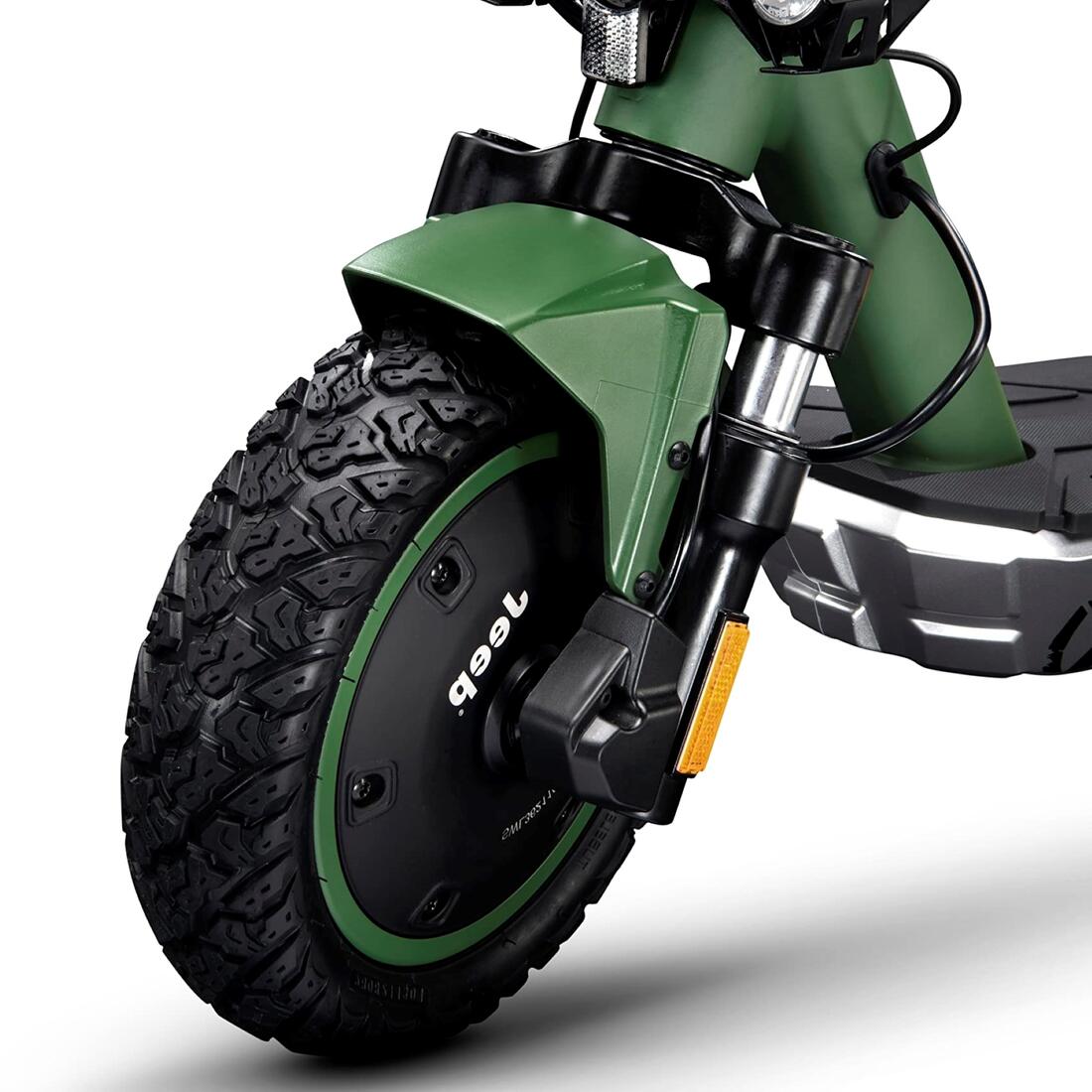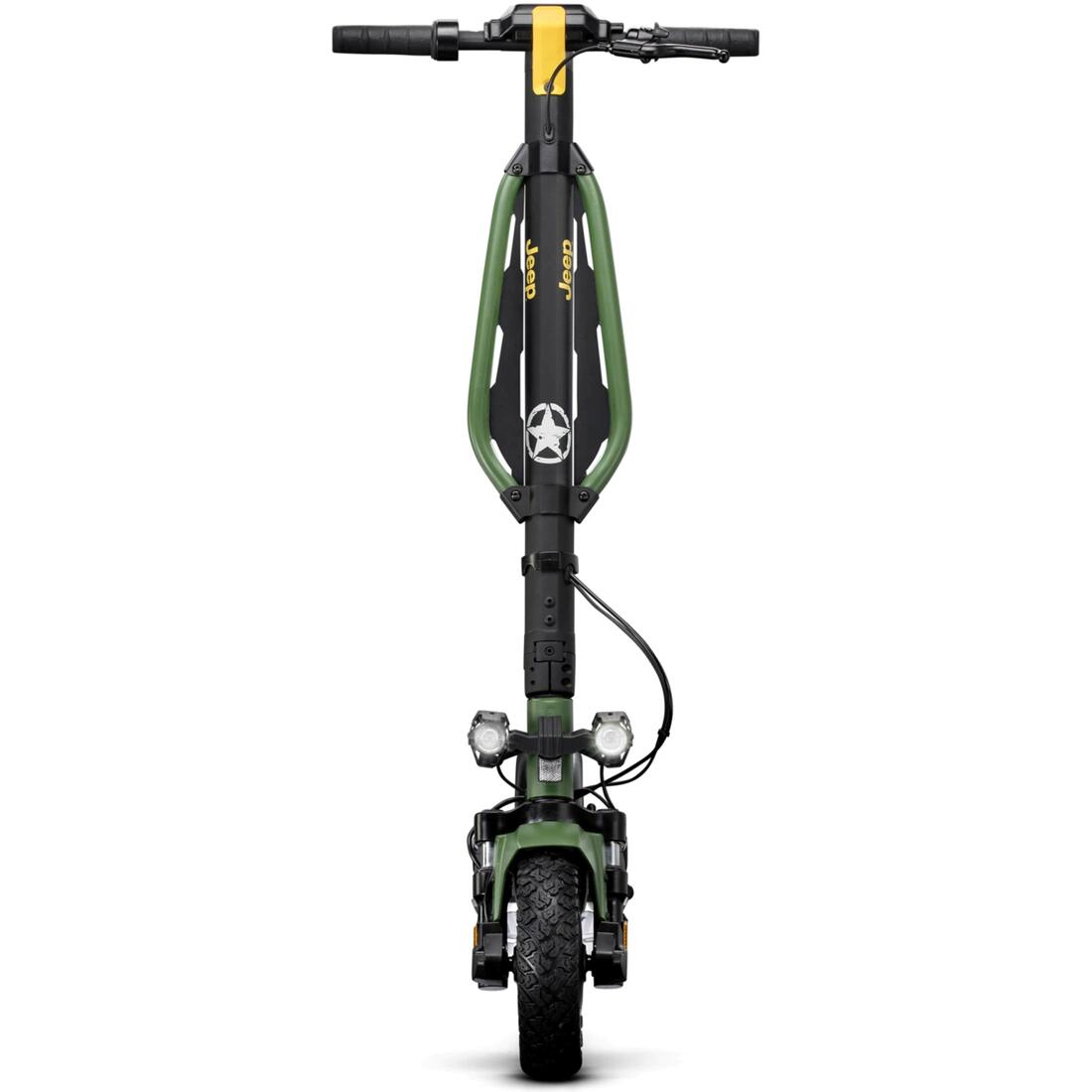 Trottinette connectée robuste, tous terrains, équipée de clignotants, de feux avant arrière et d'une batterie 350W permettant de circuler partout même en pente, en vivant l'esprit d'aventure Jeep.