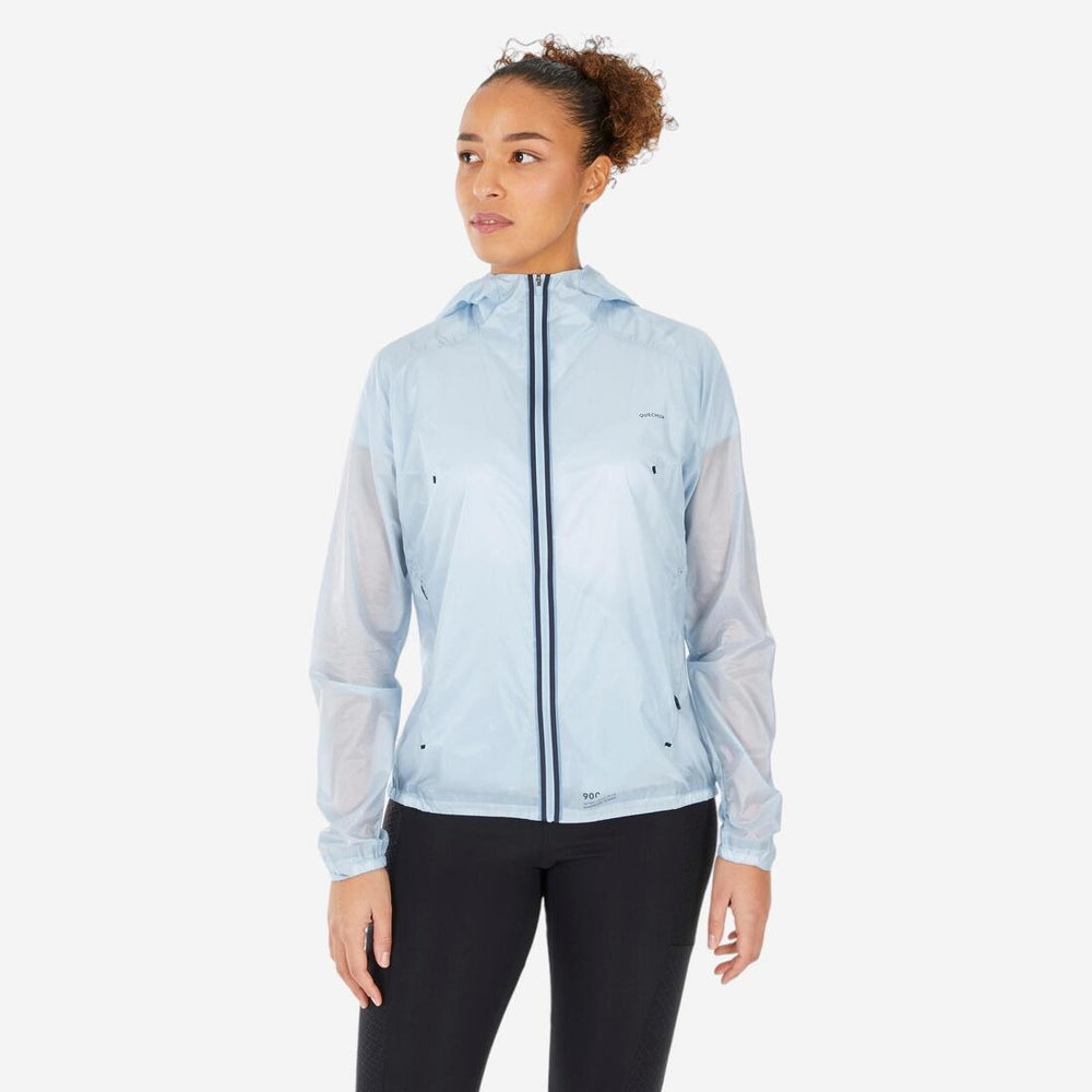 Cette veste de randonnée coupe-vent protègera les randonneuses régulières d'un vent moyen lors de leurs randonnées par temps sec.