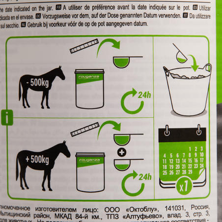 Convient aux chevaux au pré et au box. Pour un cheval, un pot est égal à une demi-cure.
