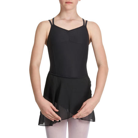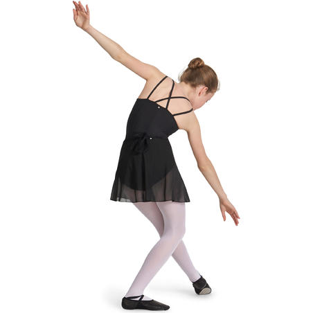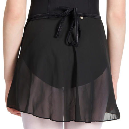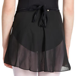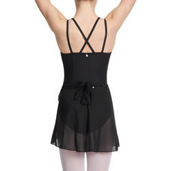 Jupette de danse classique portefeuille en voile. Dotée de cordons de serrage à enrouler et nouer dans le dos. Liens aspect satin. Parfaite pour les leçons de ballet. A accorder avec un justaucorps.