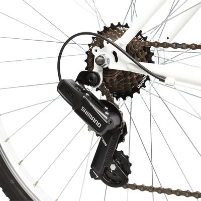 1er prix VTT de VTT femmes : cadre robuste à enjambement facile, 6 vitesses SHIMANO, pneus tout terrain et frein V-brake, pour plus de puissance.