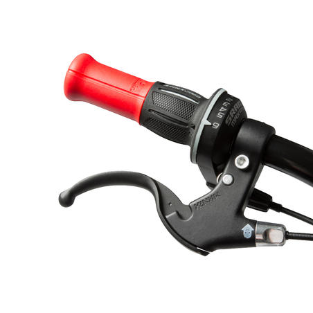 VTT équipé de 6 vitesses, avec leviers de frein adaptés à la main de lenfant.
