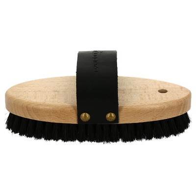 Notre brosse douce SENTIER est en bois respectueux de l'environnement et poils naturels. Poignée cuir pour un bon confort !
