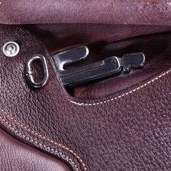 Grâce à son arçon réglable, adaptez notre selle d’équitation en cuir PADDOCK à la morphologie de votre cheval ! Vendue avec 3 largeurs d’arcade : S, M et L.
