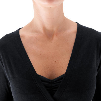 Cache-cœur de danse pour l'échauffement. Doux et confortable, il vous gardera au chaud. Fermeture bouton de chaque côté des hanches pour éviter les liens qui se défont.