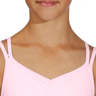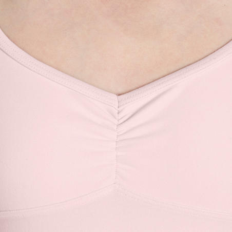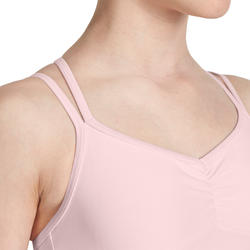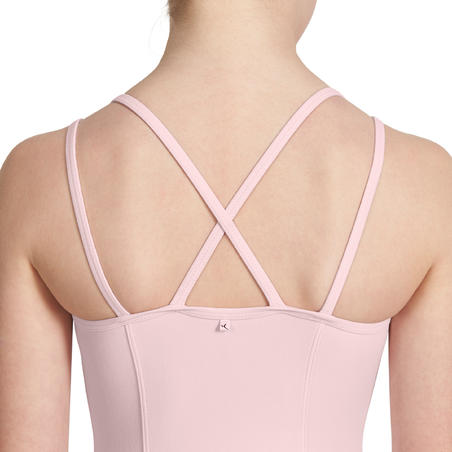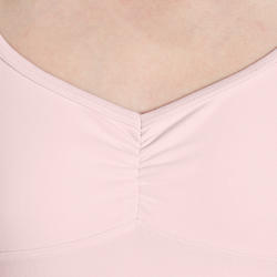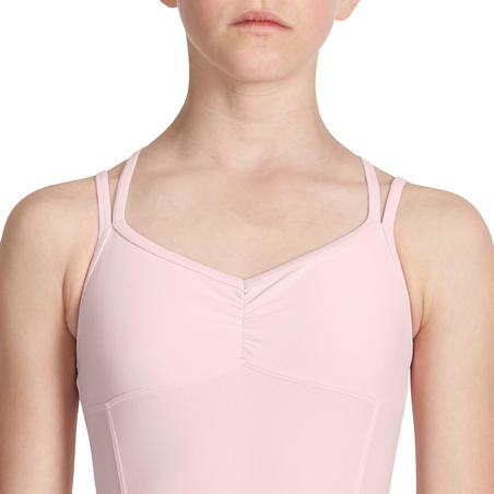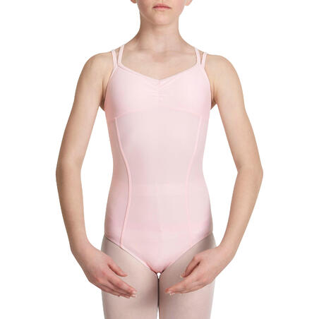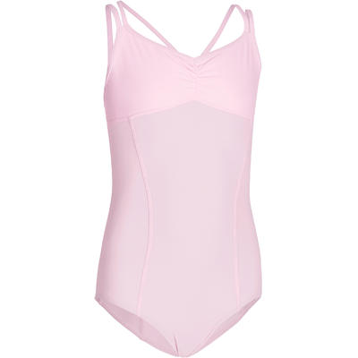 Idéal pour les petites filles débutant les cours de danse classique! Justaucorps à fines bretelles croisées dans le dos, froncé sur le décolleté. Découpe princesse affinant la silhouette.