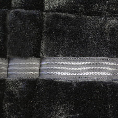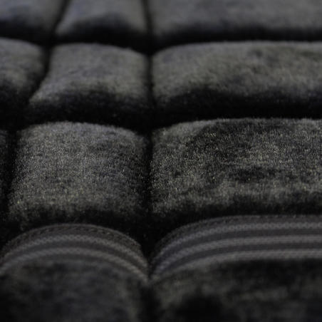La mousse moelleuse répartit les pressions sur le dos du cheval et la bande silicone stabilise l'amortisseur sous la selle.