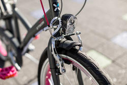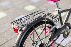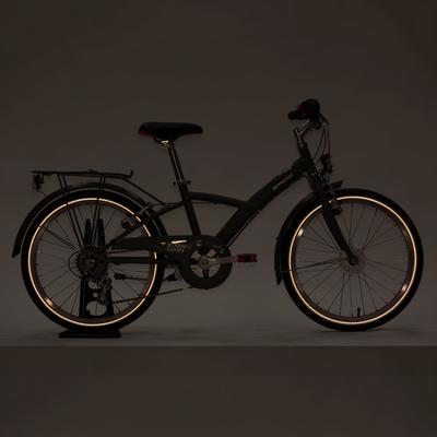 Pour vous déplacer toute l'année, de jour comme de nuit, nous avons équipé ce vélo ville 20 pouces de gardes boue, d'un éclairage LED à dynamo, de pneus à bandes réfléchissantes et d'un porte bagage.