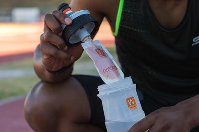 Alternez entre boisson sport et eau dans un seul bidon, en tirant sur la tétine.