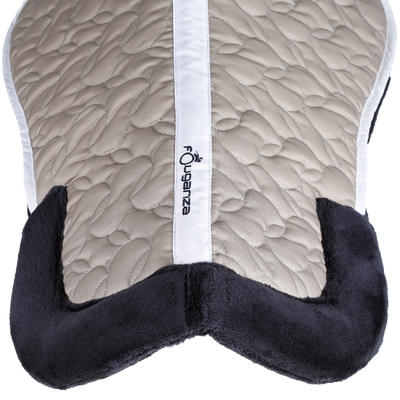 La laine naturelle absorbe les chocs et limite les pressions sur le dos du cheval. Ses propriétés respirantes limitent l'accumulation de chaleur sous la selle.