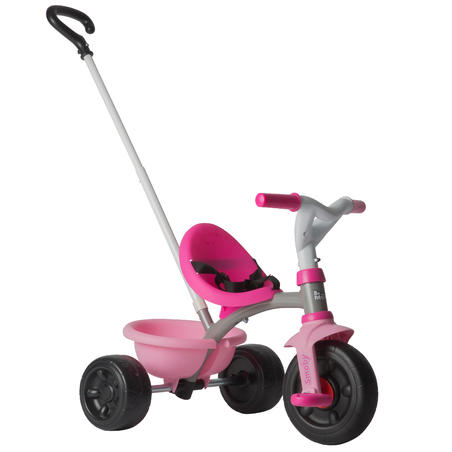 Pour découvrir le 3 roues simplement ! Avec canne amovible, pédales désactivables pour la promenade et ceinture de sécurité.