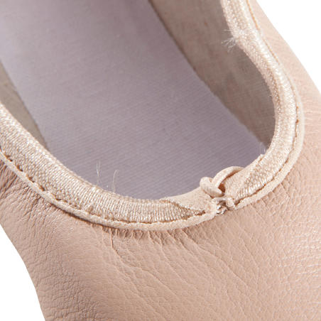 Demi-pointes semelle entière en cuir souple adaptée aux pieds de la débutante. La semelle entière permet de travailler la force et le cou-de-pied en toute stabilité!