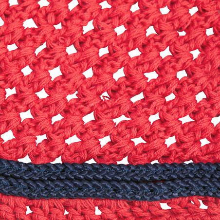 Bonnet en maille et oreilles en tissu extensible qui épousent parfaitement la tête du cheval.