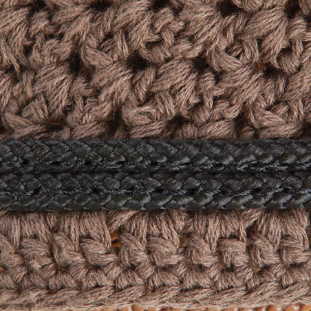 Bonnet en maille et oreilles en tissu extensible qui épousent parfaitement la tête du cheval.