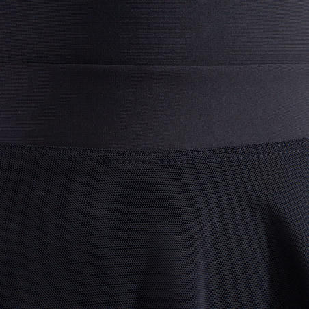 Une jupette qui adhère parfaitement à la matière des justaucorps, sans lien.