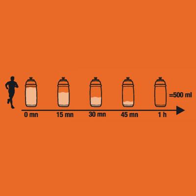 Apporte 73 kcal et 15g de glucides par bidon de 500 ml.
