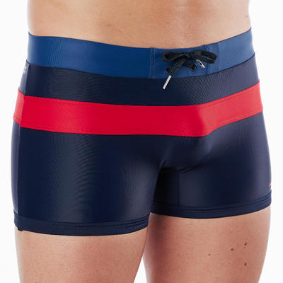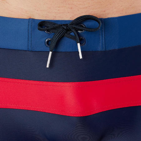Un maillot de bain homme alliant confort et maintien avec son cordon de serrage extérieur et une découpe horizontale pour un look plus moderne.