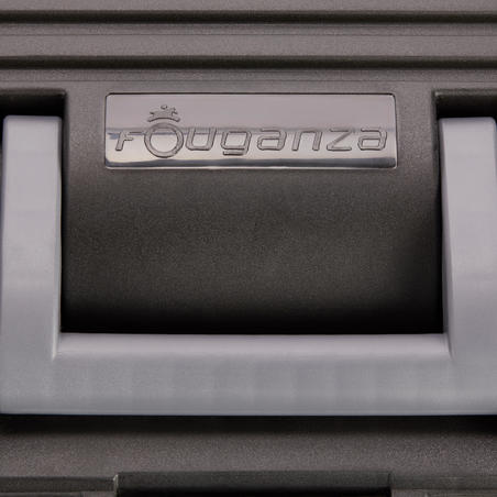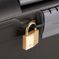 Poignée rabattable. Un emplacement est prévu pour mettre un cadenas.