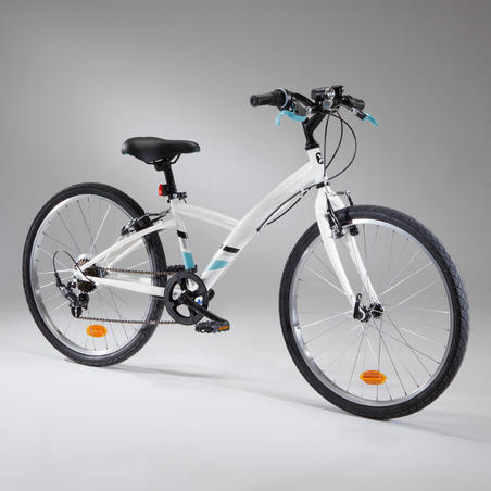 Pour découvrir les premières balades à vélo, notre VTC enfant 24 pouces est équipé de 6 vitesses. Il vous permet d'aborder tous types de chemins : du terrain plat aux sentiers vallonnés.