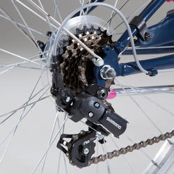 Pour vous balader toute l'année, ce VTC 24 pouces est équipé de gardes boue, d'un panier et d'une béquille. Les 6 vitesses permettent d'aborder tous les chemins, du terrain plat aux sentiers vallonnés
