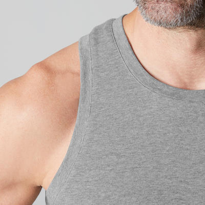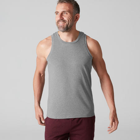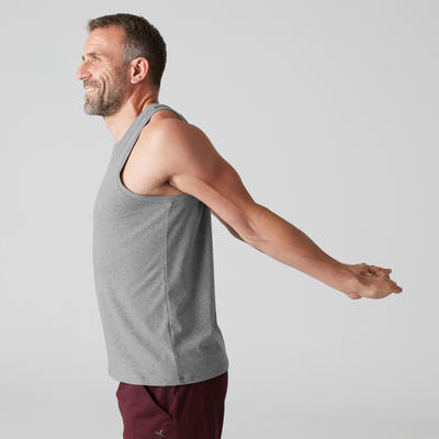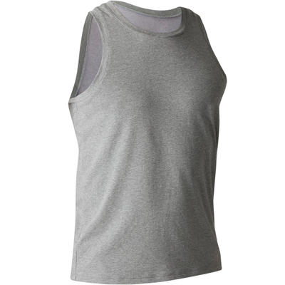 Débardeur 500 regular Pilates Gym douce homme gris clair chiné