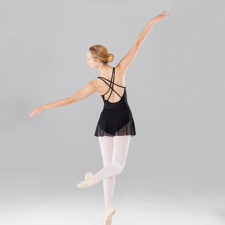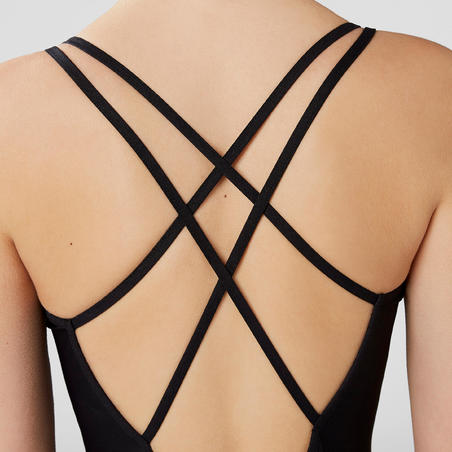 Vous souhaitez danser en toute liberté ? Parfaitement ajustées aux formes de votre corps, les bretelles fines du justaucorps se croisent élégamment dans votre dos! Parées ? A vous de danser!