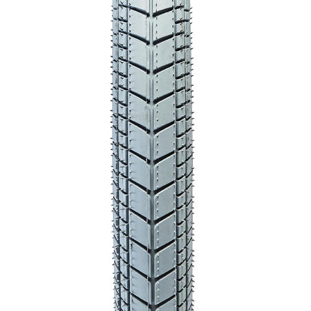 Pneu conçu pour l'initiation au BMX dans la rue, sur les modules urbains et terrain vague. Sa forme légèrement cramponnée le rend polyvalent et sa grosse dimension lui apporte un bon amorti !